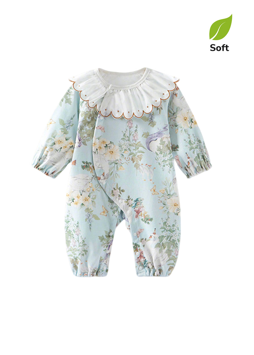 Baby Girls Cute Bamboo Fiber Floral Cartoon Print Dollar Collar Romper