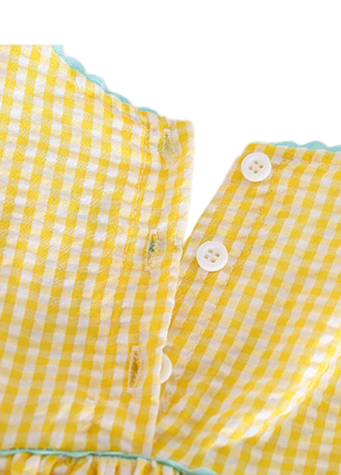 Design: Sleeveless dress with embroidered duck patterns, floral embroidery accents, and a classic gathered skirt