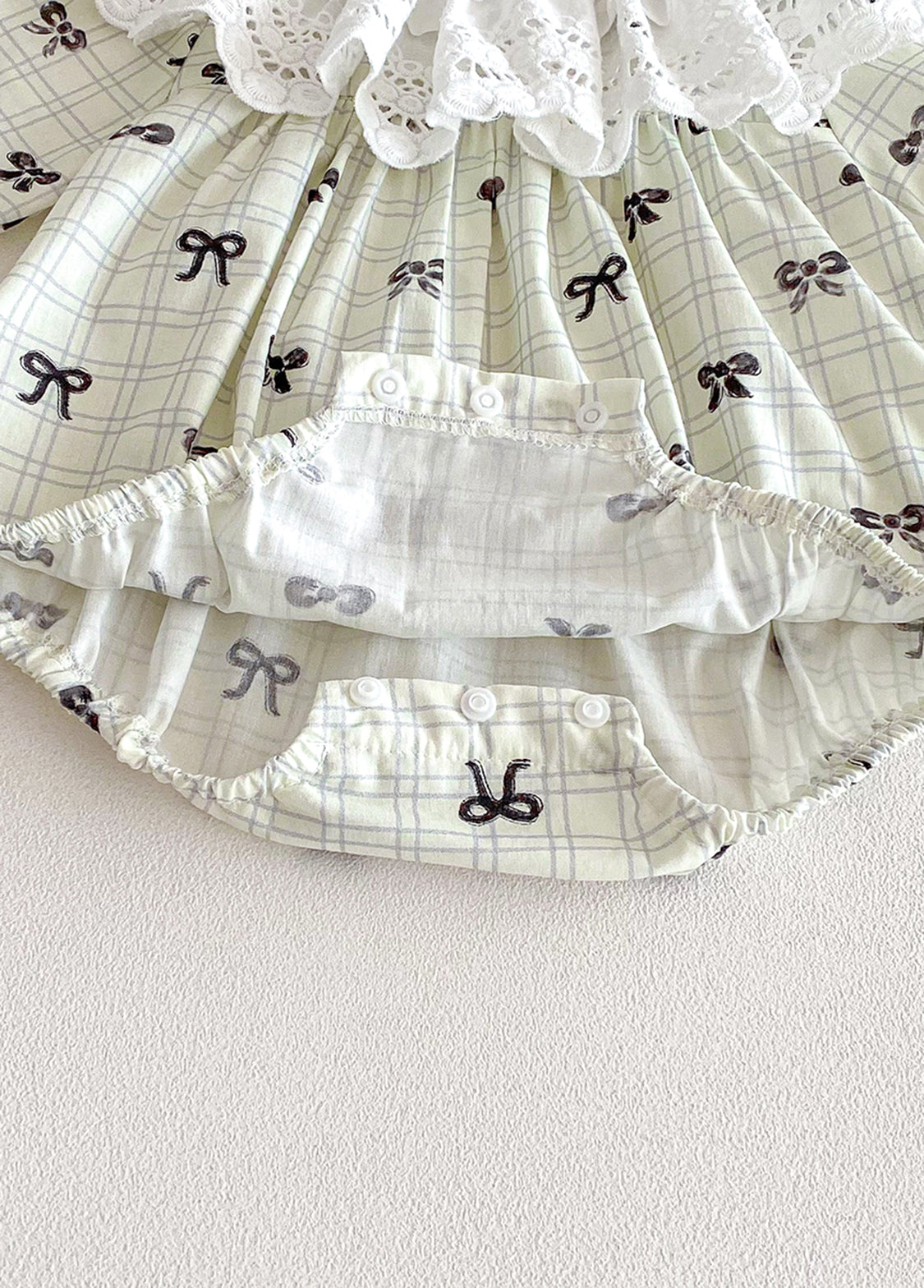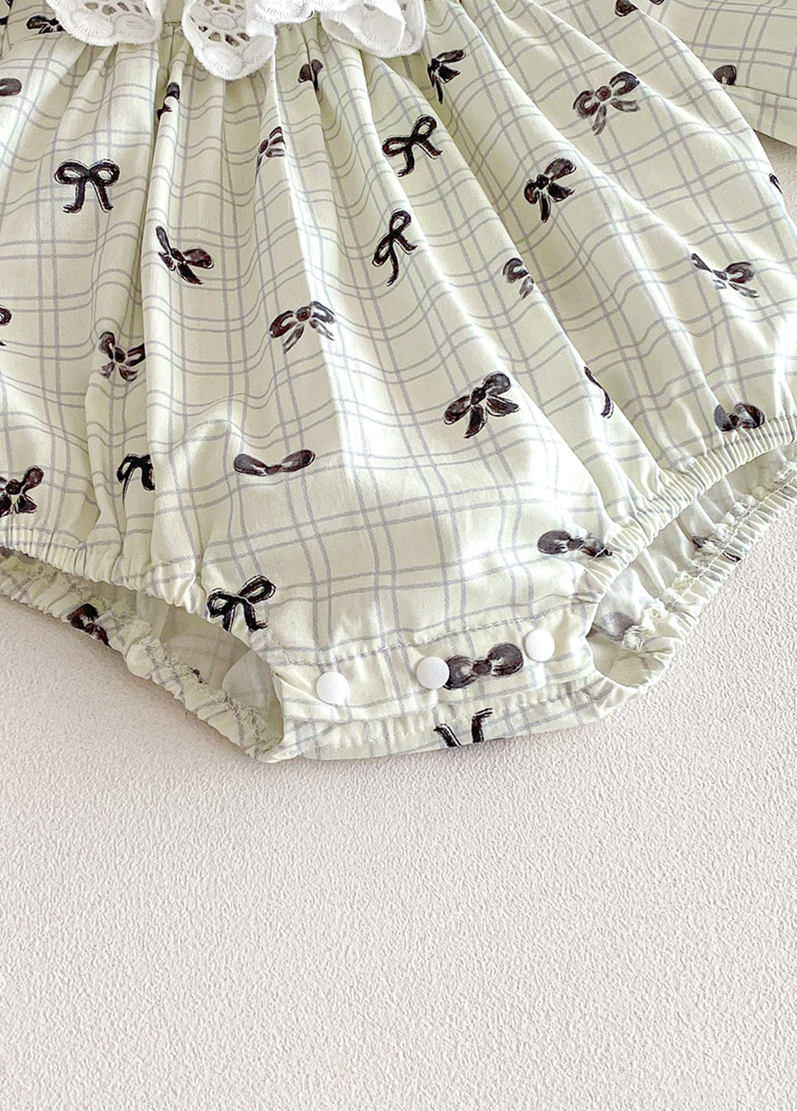 Baby Girls Pastoral Style Bowknot Romper With Hairband