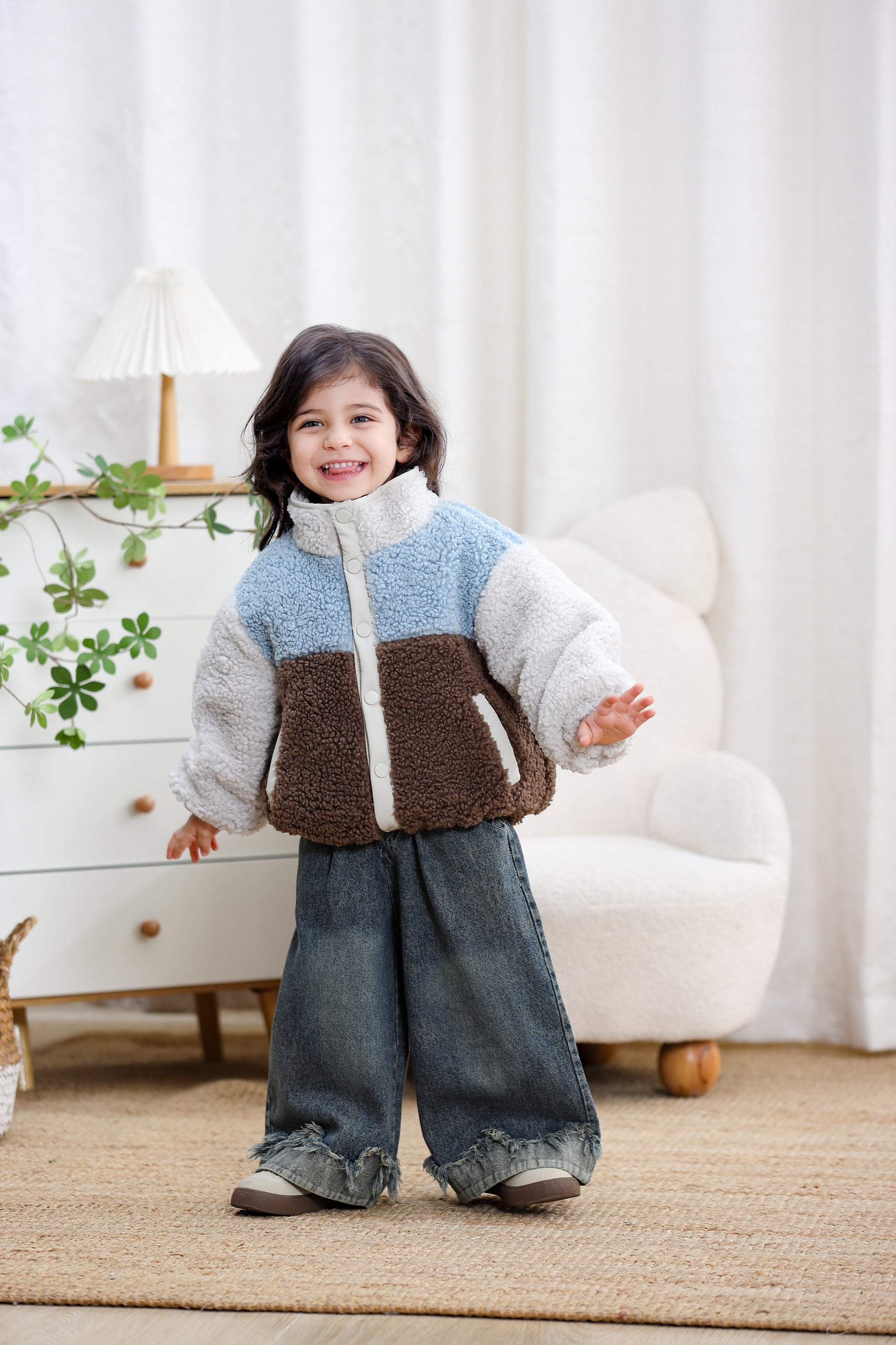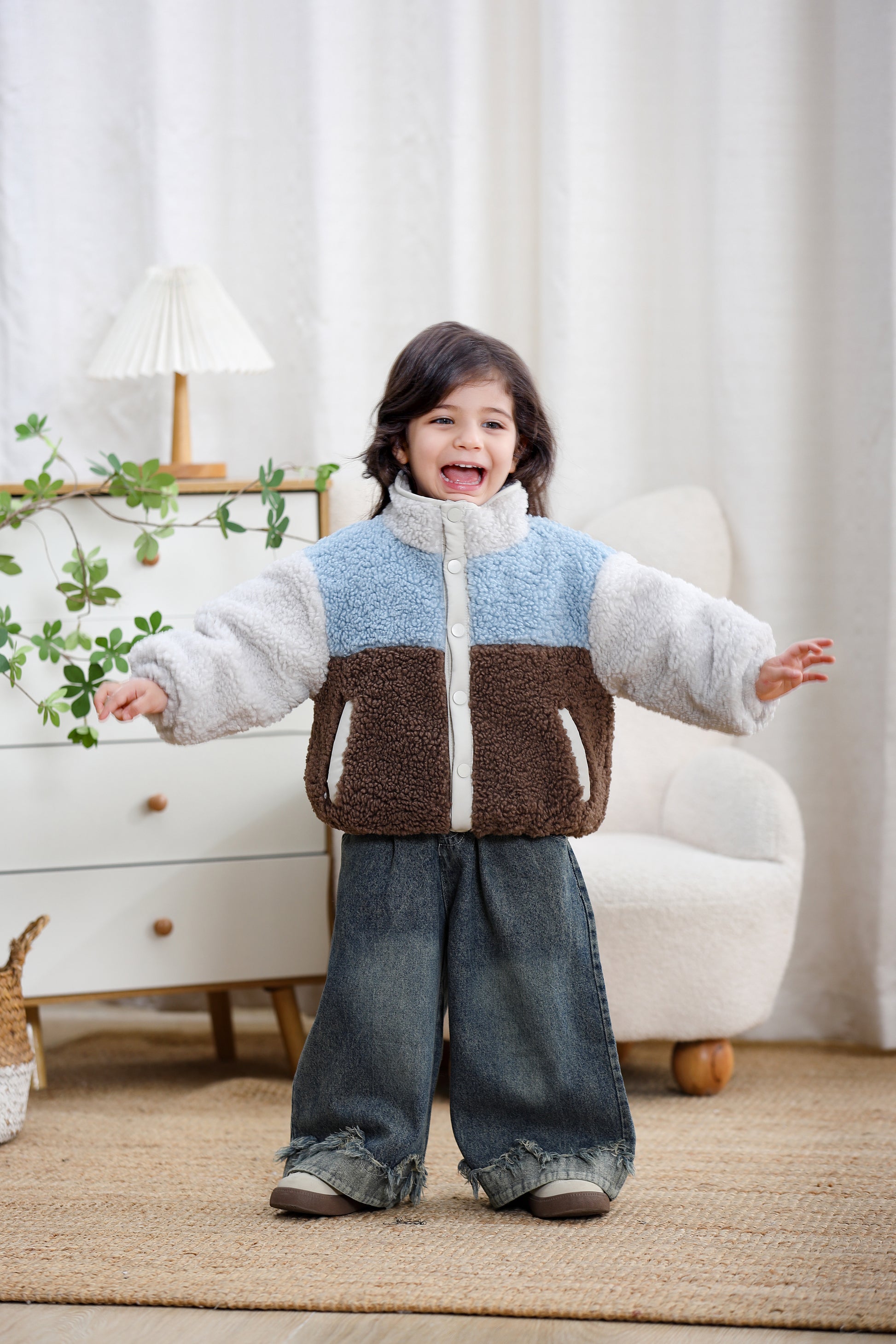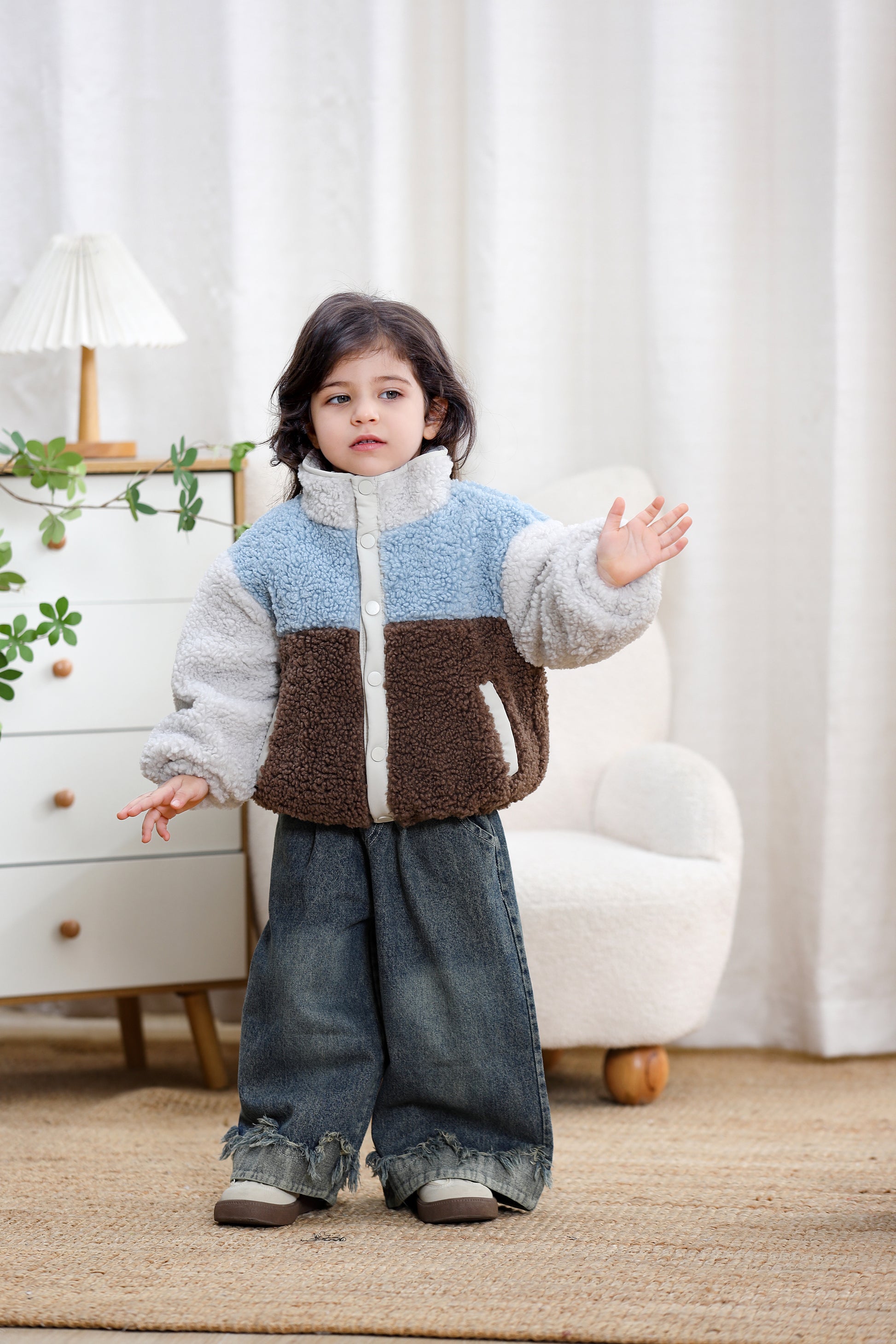 Color Block Sherpa Fleece Zipper Kids Jacket