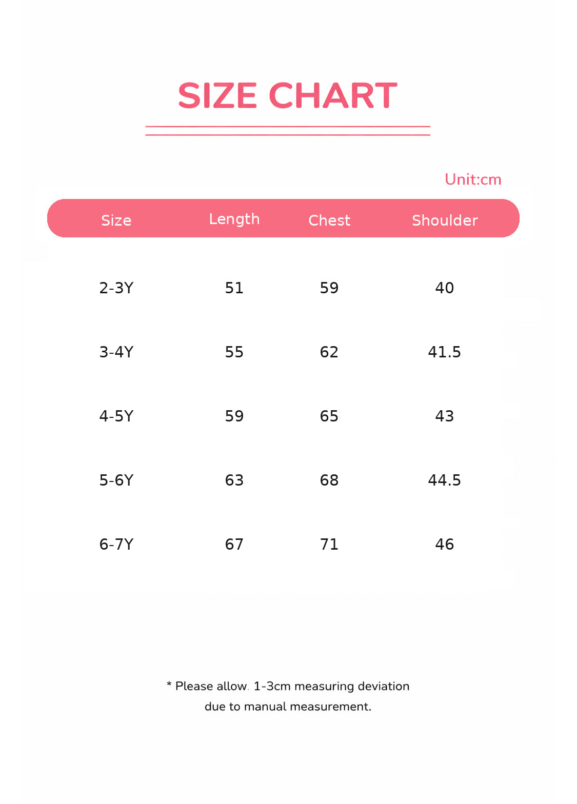 Our kids' clothing range is designed to cater to children of all ages, from newborns to teenagers. Our size chart includes detailed measurements for each age group, ensuring a comfortable and accurate fit for your child. Please refer to our size guide on the product page for more information, and don't hesitate to contact our customer service team if you need assistance with sizing.