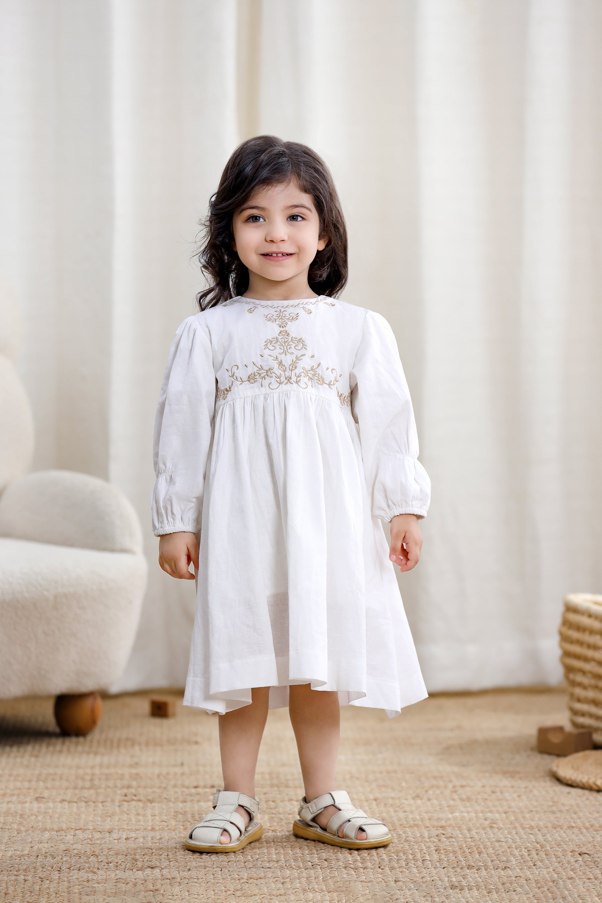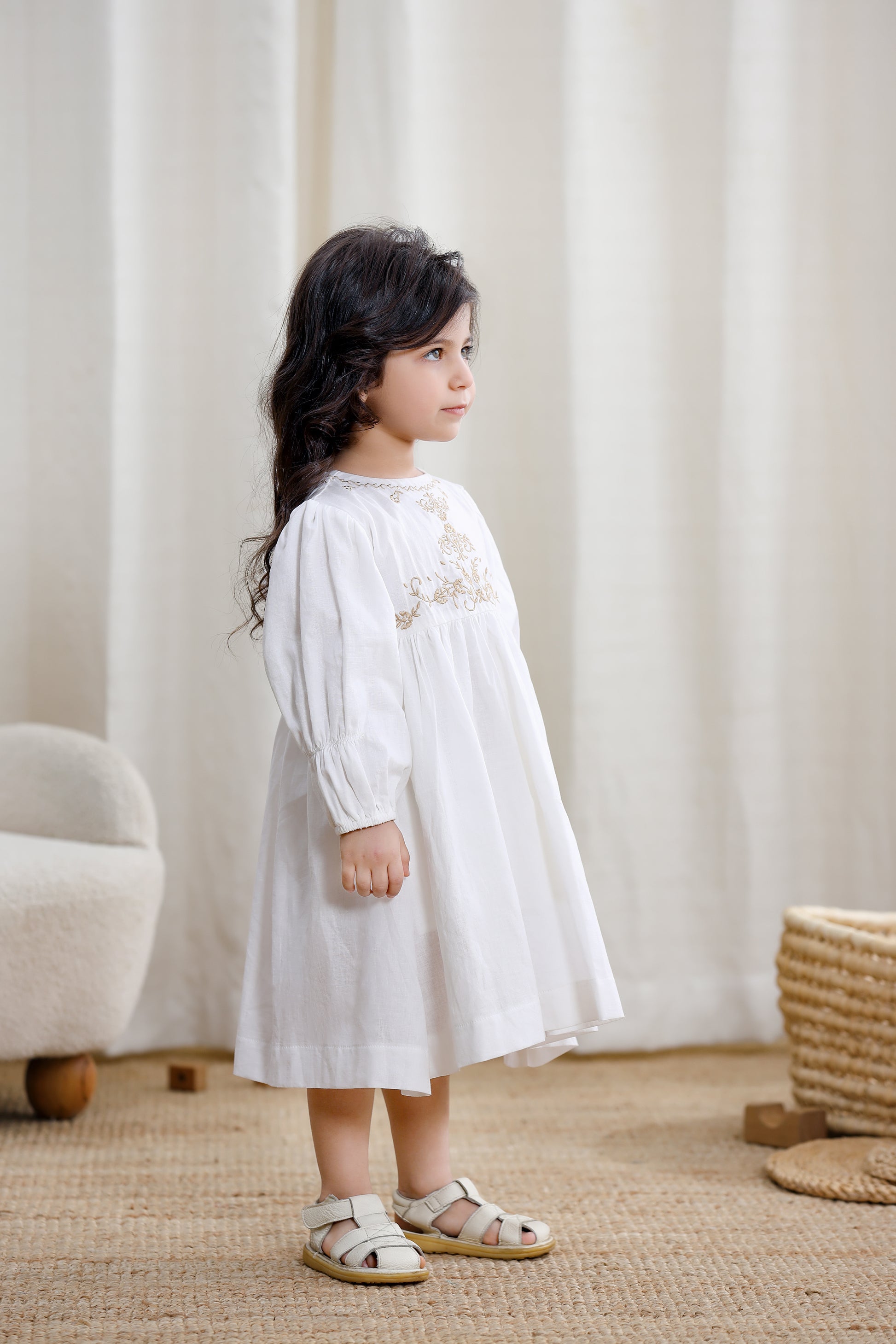 Girls Long Sleeve Dress-White