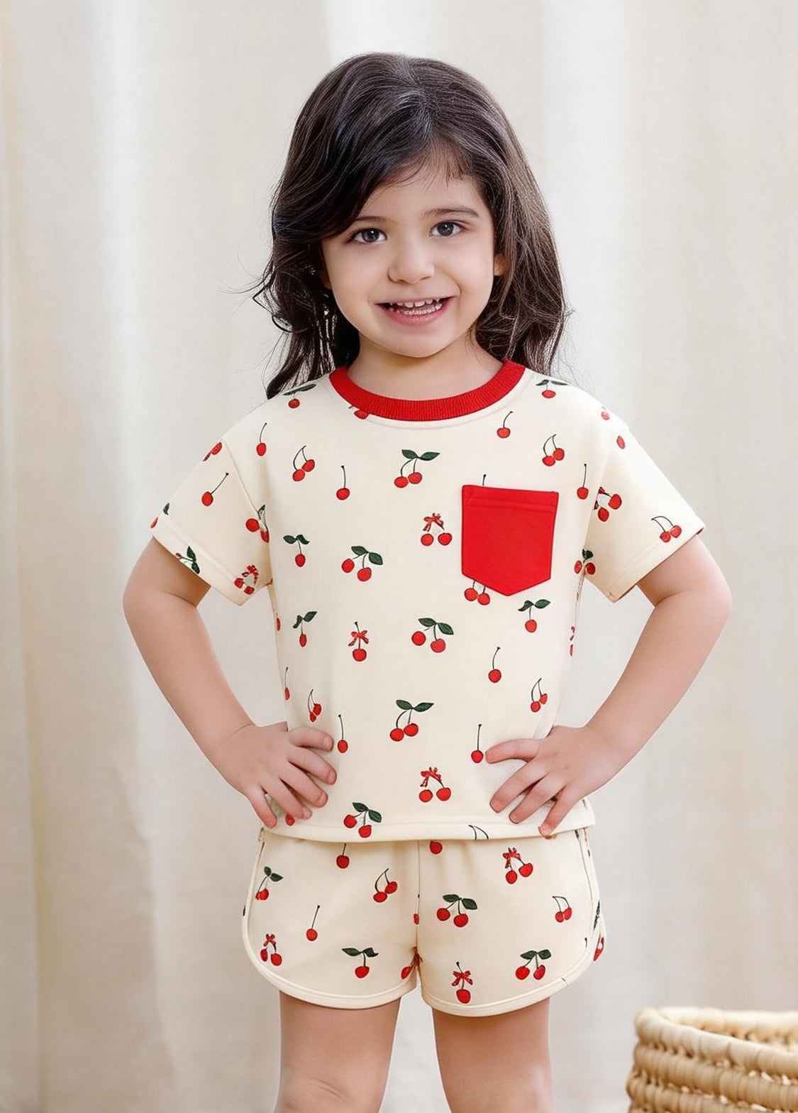A lightweight and breathable two-piece set featuring an all-over cherry print, designed for a soft, comfortable fit and easy everyday wear. Perfect for lounging, playtime, or warm-weather outings.