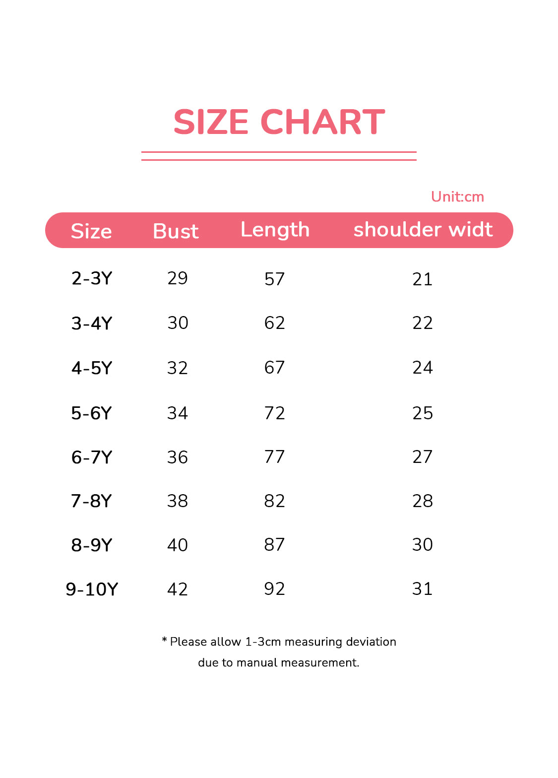 Our kids' clothing range is designed to cater to children of all ages, from newborns to teenagers. Our size chart includes detailed measurements for each age group, ensuring a comfortable and accurate fit for your child. Please refer to our size guide on the product page for more information, and don't hesitate to contact our customer service team if you need assistance with sizing.