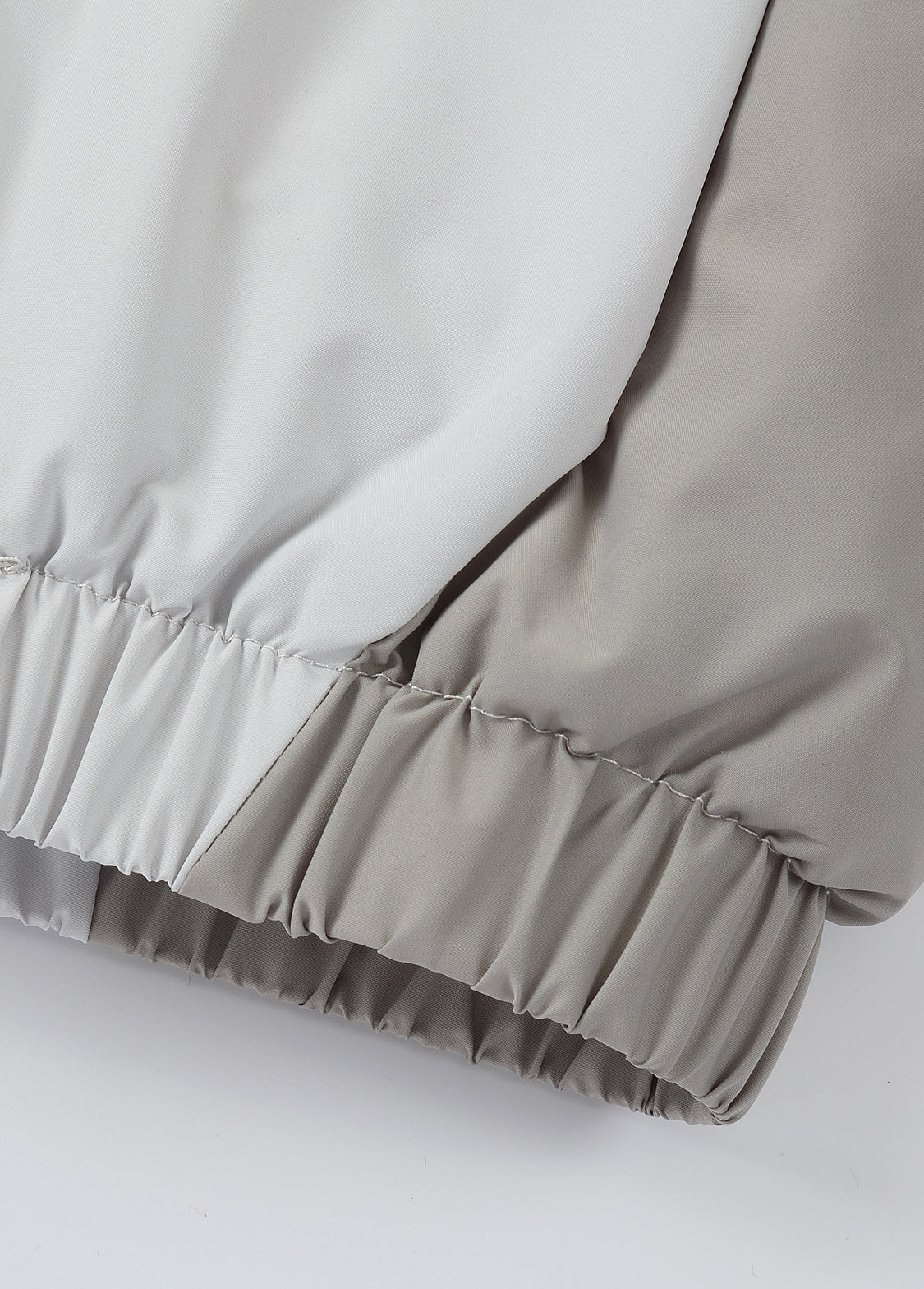 Design: Colorblock panels with stand collar, zip-front closure, elastic cuffs and hem